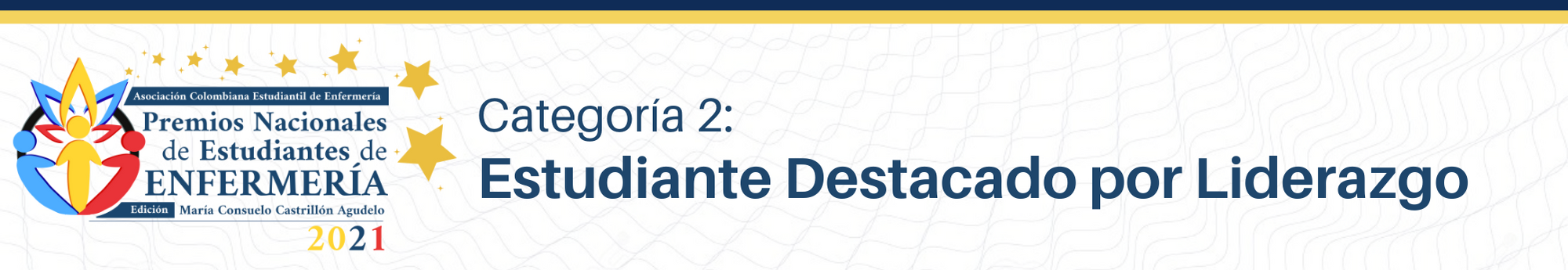 Está categoría pretende reconocer el trabajo de aquellos estudiantes que, durante su formación profesional, se han interesado en desarrollar una virtud de líder dentro de los diversos campos buscando empoderar a sus iguales, desarrollando actividades, organizando eventos, buscando espacios de crecimiento profesional y académico de utilidad para los demás, así mismo quien ha velado por los derechos y deberes de los estudiantes a los cuales lidera y/o representa. Se exalta esta ardua labor, y se pretende que este reconocimiento motive al estudiante en su camino como líder.